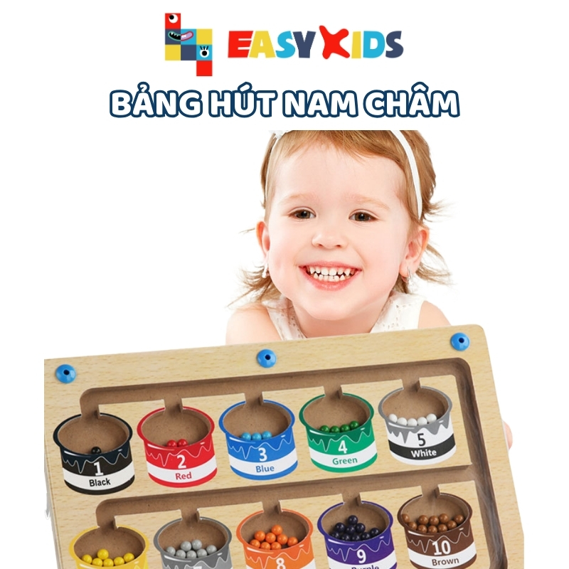 Bảng hút nam châm Montessori là một sản phẩm giáo dục đa năng, giúp bé phát triển khả năng phân biệt màu sắc và số đếm một cách sáng tạo. Sản phẩm bao gồm một bảng có các ô màu sắc khác nhau và các ô số từ 1 đến 10. Các viên bi có nam châm, giúp bé dễ dàng lựa chọn và đặt chúng vào các ô màu sắc tương ứng.