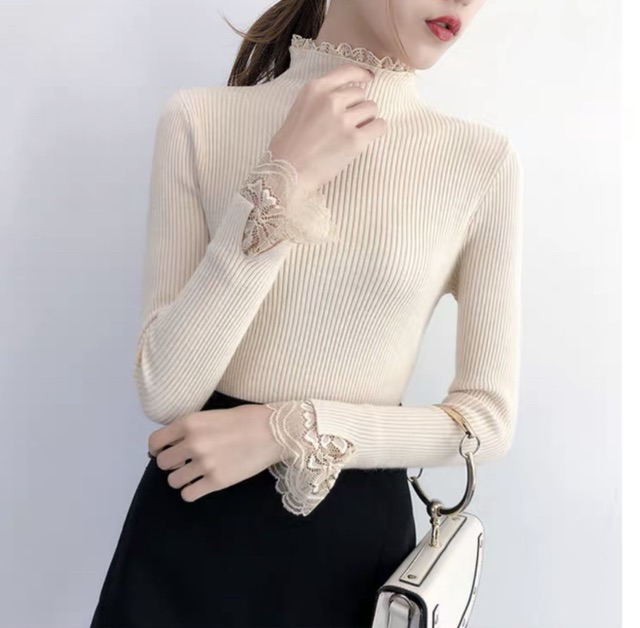 Giới thiệu MS204 Áo len nữ Quảng Châu phối ren điệu đà