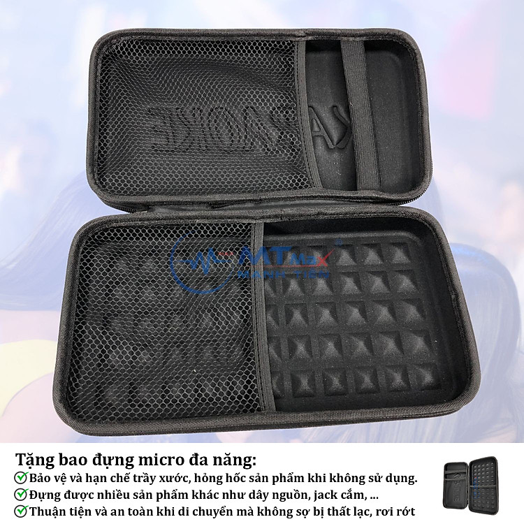 không chỉ phục vụ cho việc ca hát, thu âm hay biểu diễn mà còn là món quà ý nghĩa dành cho người thân yêu. Sản phẩm kèm theo một bao đựng micro đa năng, giúp bảo quản và vận chuyển dễ dàng. Với thời gian bảo hành 1 năm, bạn hoàn toàn yên tâm về chất lượng và sự hỗ trợ từ MTmax.