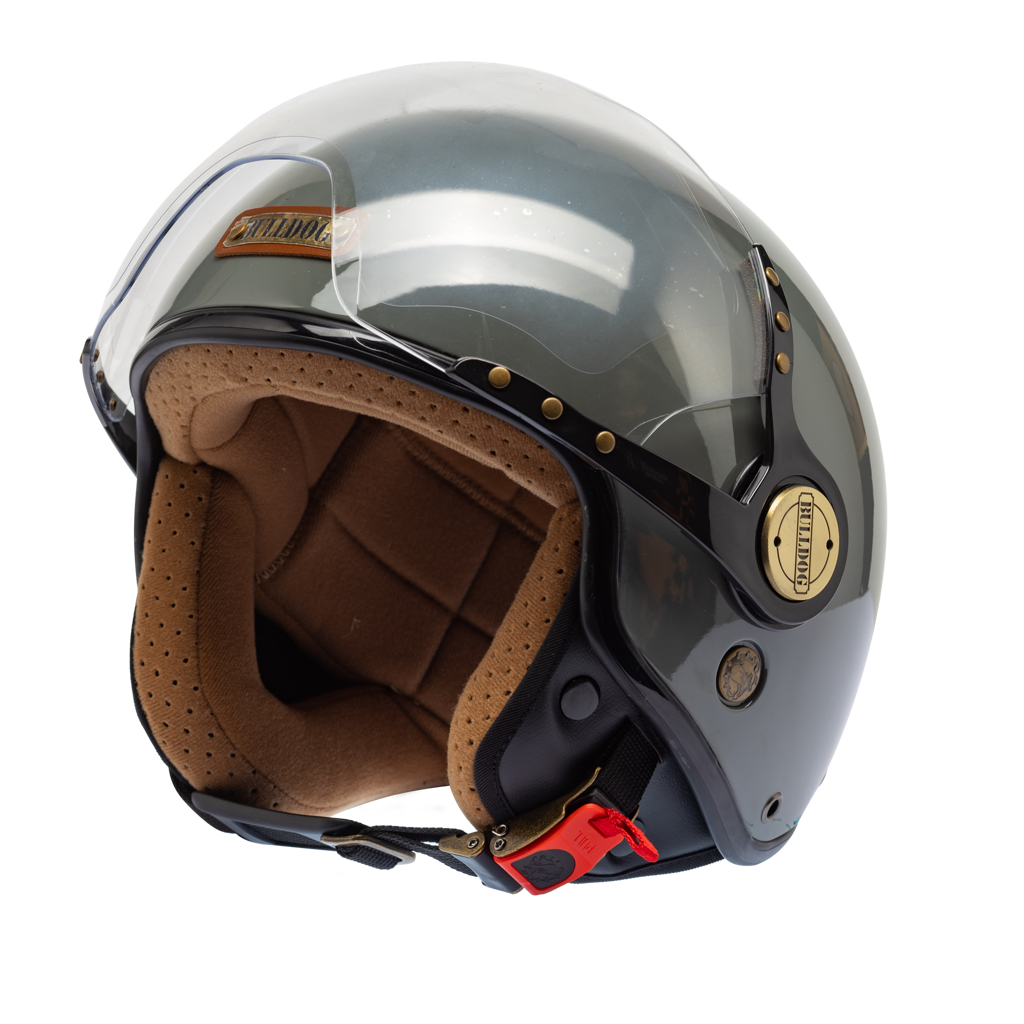 - Ốp kính làm bằng hợp kim màu đồng cổ điển có in thương hiệu Bulldog tôn lên một nét đẹp thẩm mĩ cho tổng thể chiếc mũ