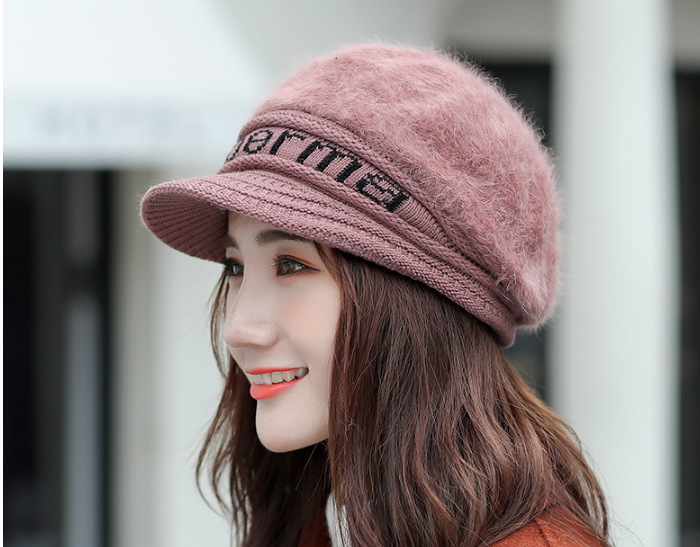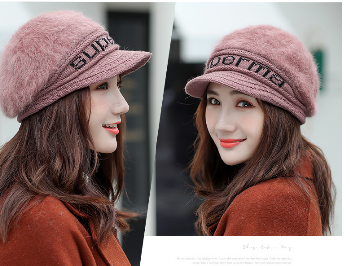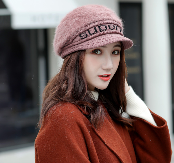 Mũ bê rê len nữ thời trang Mũ len lưỡi trai nữ lông thỏ cao cấp