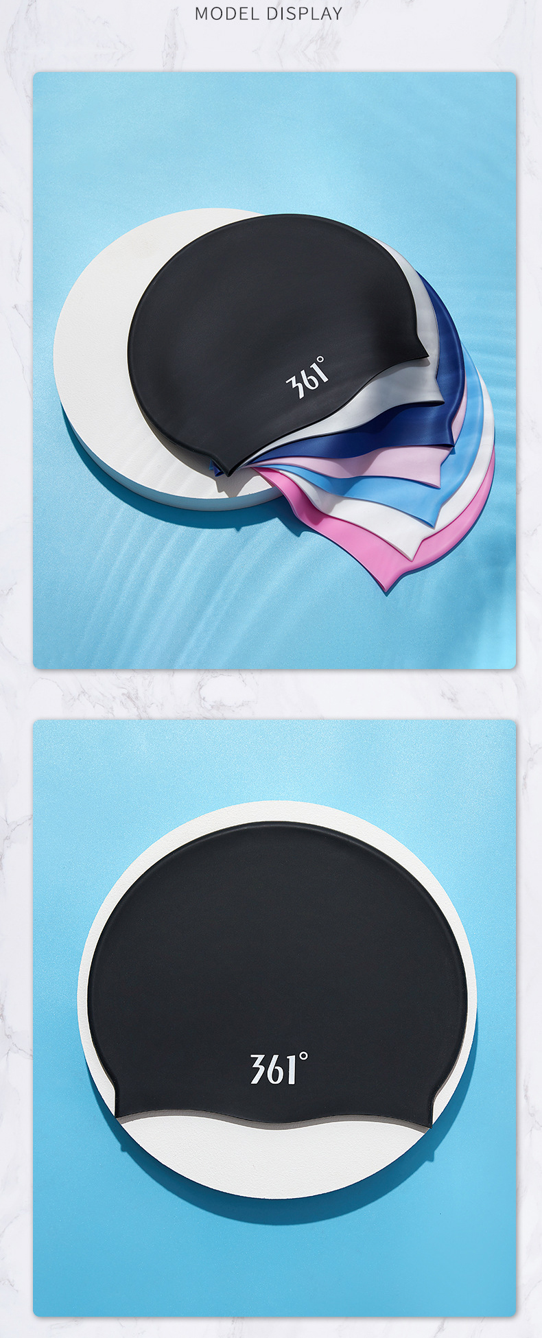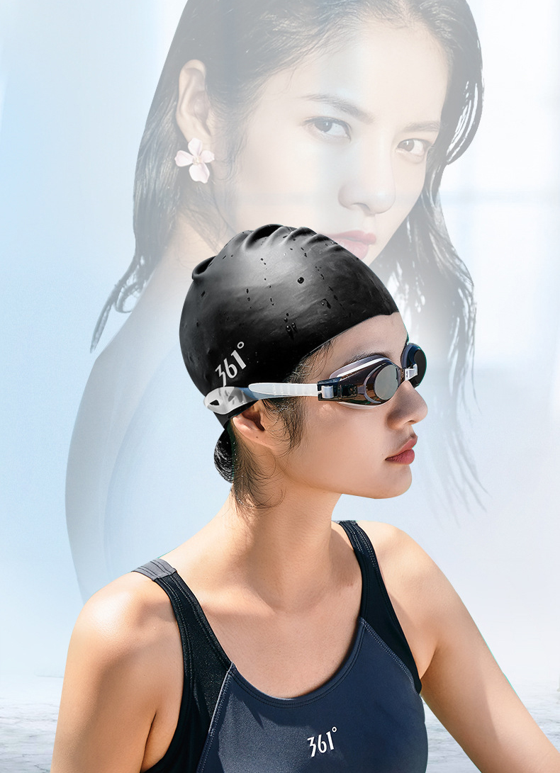 - Mũ ôm sát đầu, bảo đảm giữ khô tóc trong quá trình bơi, tránh nước bể bơi làm khô xơ tóc.