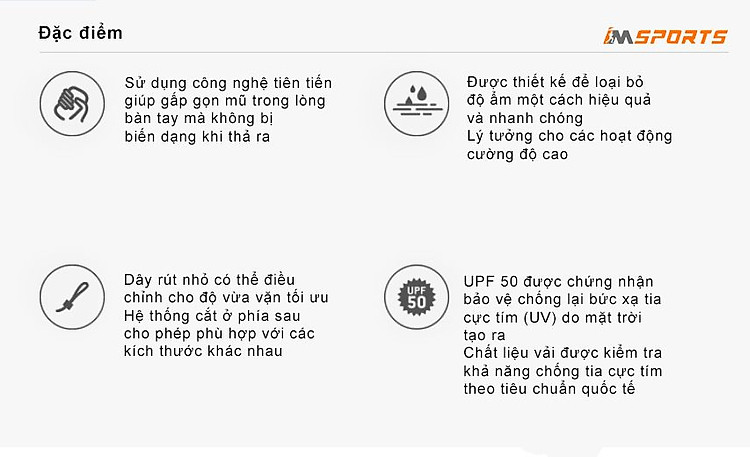 Ngoài ra, chiếc mũ chạy bộ này còn được thiết kế co giãn 4 chiều kết hợp với một dây band giúp ngăn mồ hôi chảy vào mắt và công nghệ thoát ẩm Fastwick giúp tối đa hóa cảm giác thoải mái mà Buff Pack mang tới. Không chỉ có thế, vành mũ làm từ Polyurethane và vật liệu bảo vệ UPF50+ của chiếc mũ này có khả khả năng bảo vệ bạn khỏi các tia có hại tới từ ánh nắng mặt trời trong các cuộc đua dài.