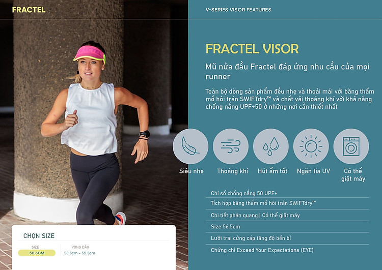 Mũ chạy bộ Fractel là một chiếc mũ chạy bộ kết hợp giữa các công nghệ hiện đại với kiểu dáng cổ điển quen thuộc. Chiếc mũ này đặc biệt nhẹ, thoáng khi và có tất cả những điều mà một người chạy bộ cần. Với nguồn nguyên liệu 100% tái sử dụng, Fractel xây dựng mục tiêu phát triển sản phẩm gắn liền với việc bảo vệ môi trường. Hãng cam kết ủng hộ 1% doanh thu cho quỹ Trái đất, mỗi sản phẩm Fractel bạn đang sử dụng sẽ đóng góp chung tay vào các hoạt động bảo vệ trái đất của chúng ta.