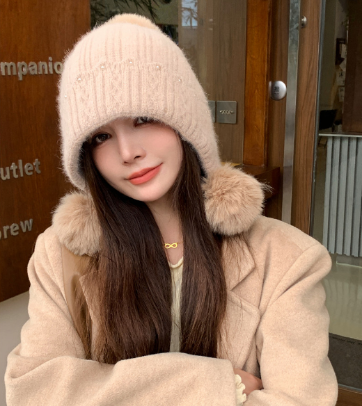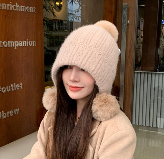 Mũ len lông thỏ phong cách Hàn mới, nón len quả bông cao cấp lót nỉ cực ấm