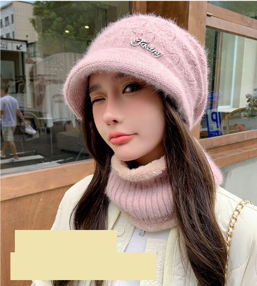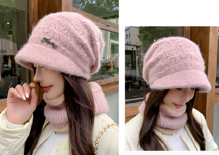 Mũ len lưỡi trai nữ kèm khăn lót nỉ cao cấp mới, sét nón len phong cách Hàn thời trang