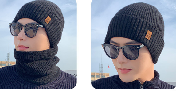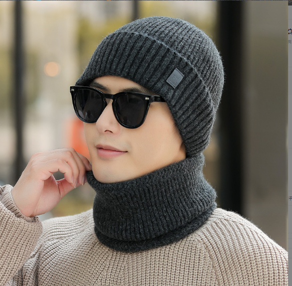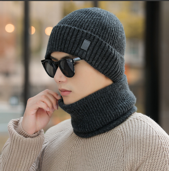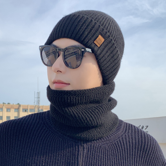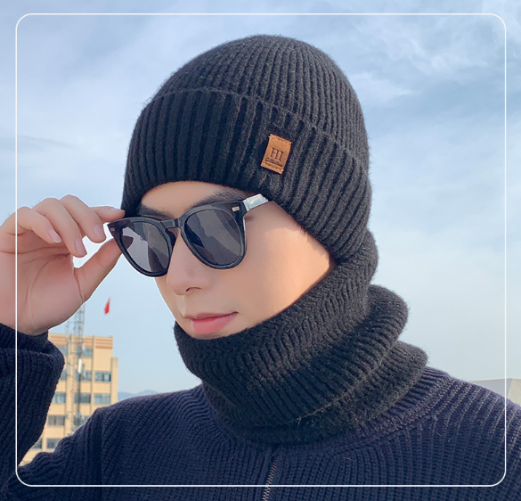 Bộ mũ len nam kèm khăn lót nỉ lông cao cấp mới, sét nón len nam phong cách Hàn