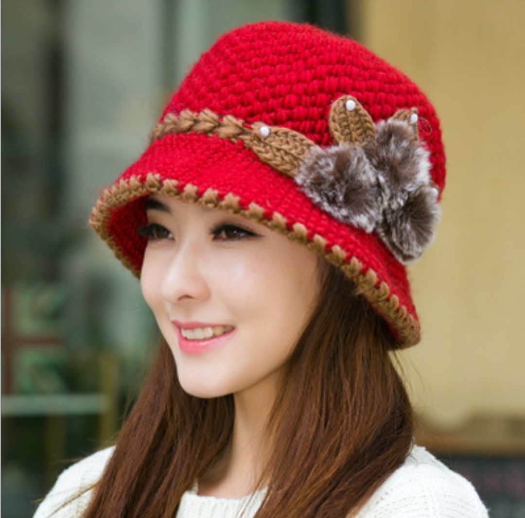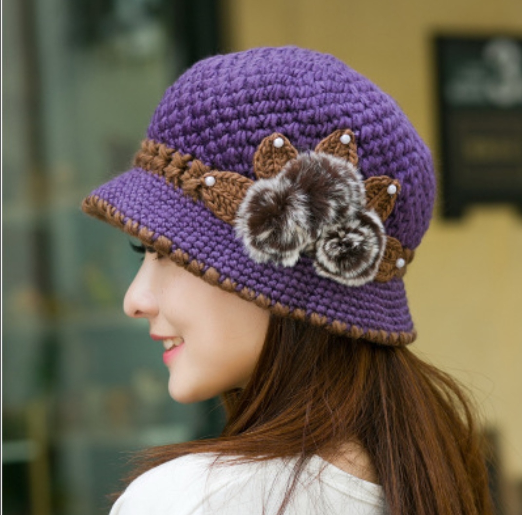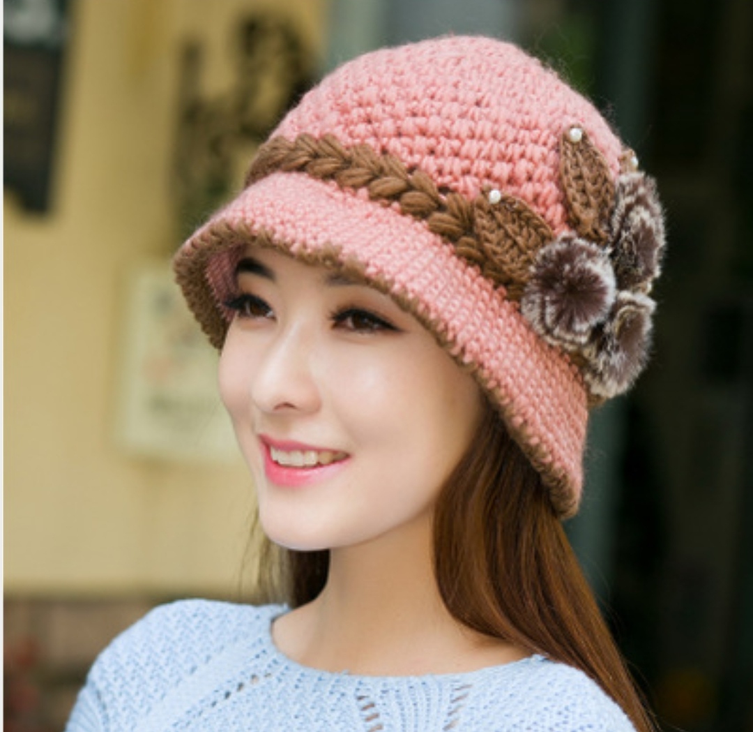 Mũ len nữ dệt kim thu đông 2 lớp thời trang Hàn QUốc