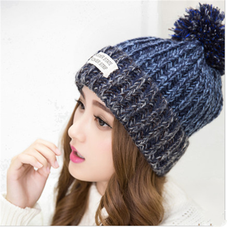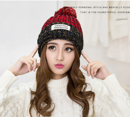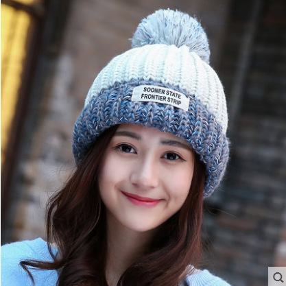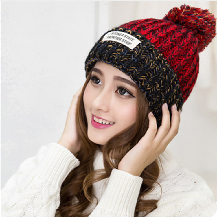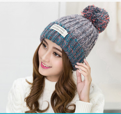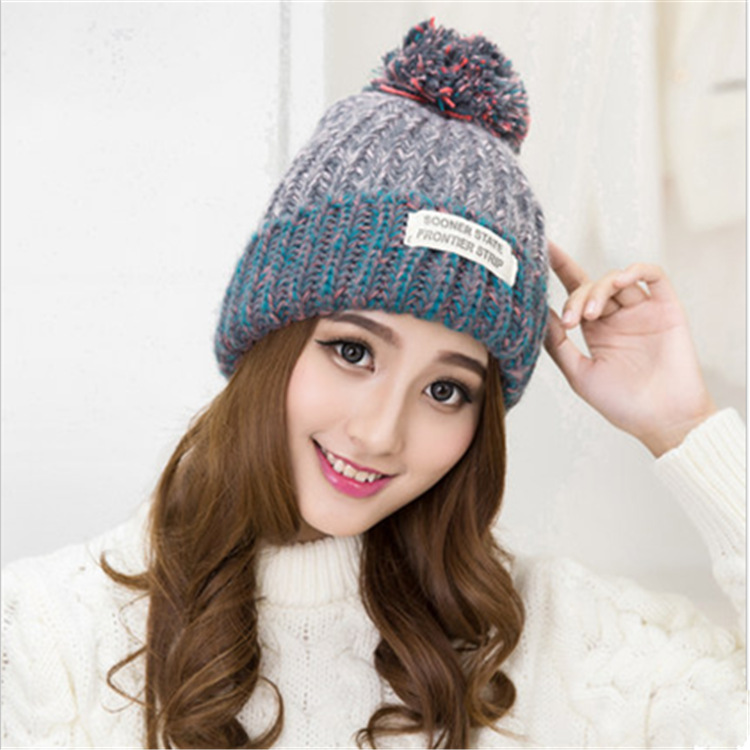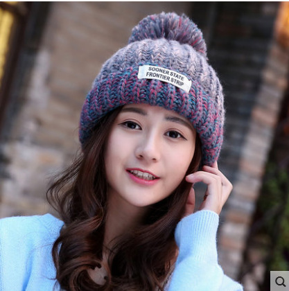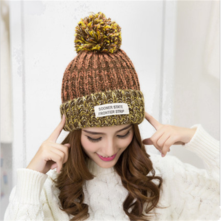 Mũ len nữ winter dệt kim ấm áp nón len phối nhiều màu