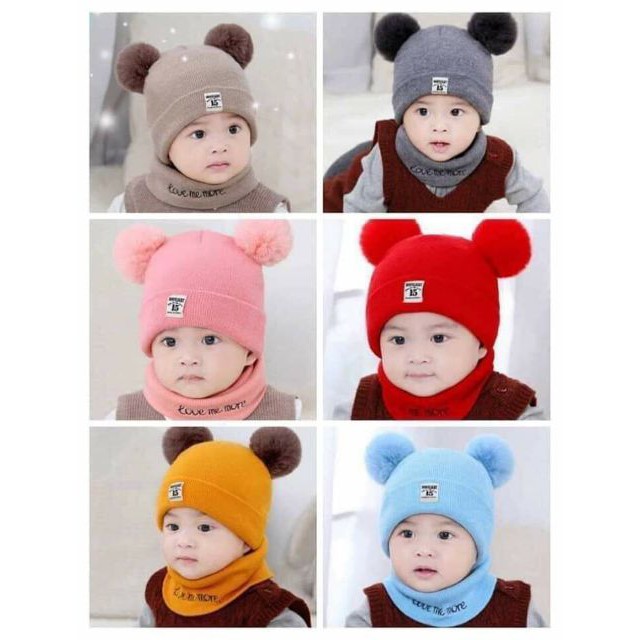 Thời trang trẻ em & trẻ sơ sinh > Phụ kiện trẻ em & trẻ sơ sinh > Mũ & mũ lưỡi trai || Mũ len quả bông kèm khăn cho bé sịn đẹp