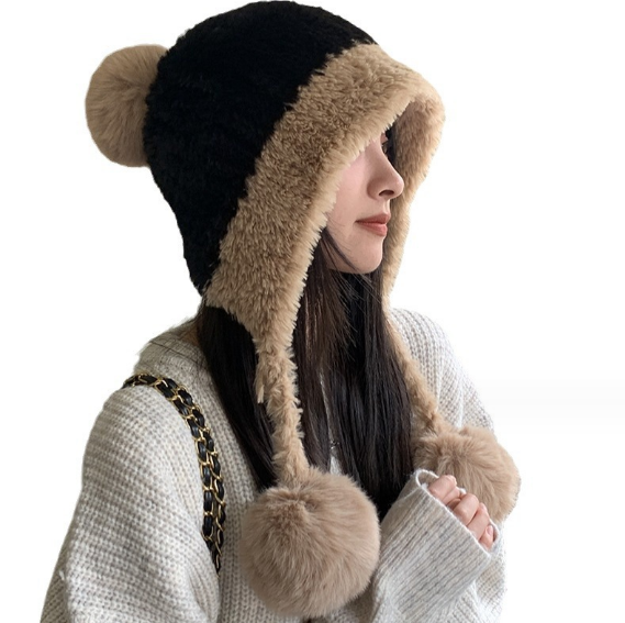 Mũ len LADY quả bông trùm đầu phong cách Hàn mới, nón len nữ cao cấp