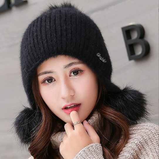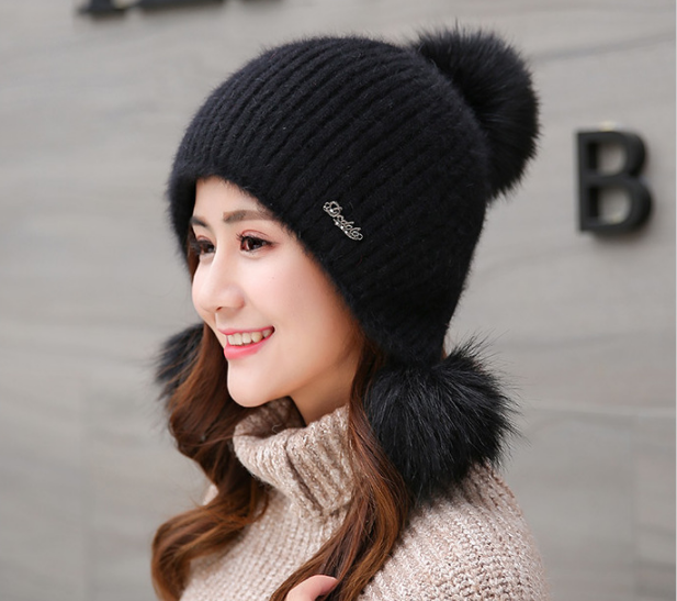 Mũ len trùm đầu quả bông nữ cao cấp, nón len nữ thời trang mới
