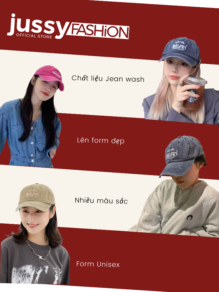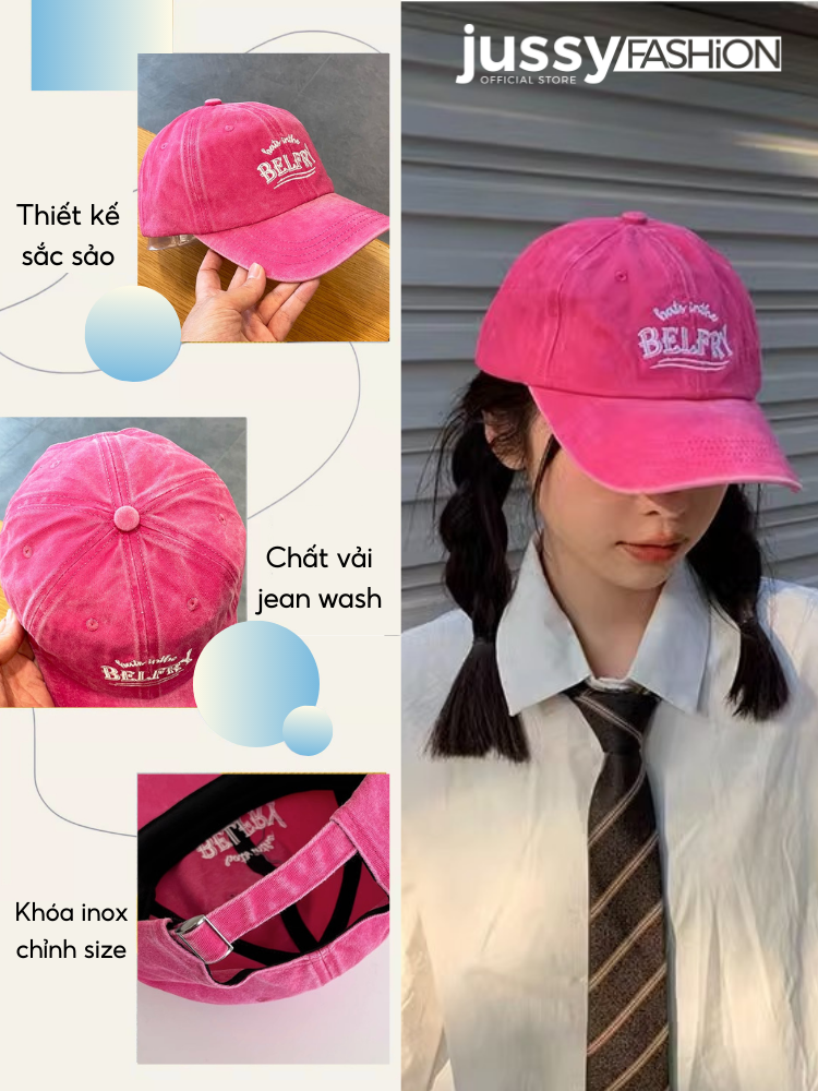 Mũ Lưỡi Trai BELFRY Hồng JLT01 Jussy Official Nón Kết Chất Jean Wash Form Unisex Nhiều Màu Hot