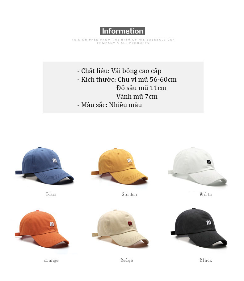 Nón kết/ mũ lưỡi trai phong cách thời Trang Hàn Quốc mã MU.MQ05Màu sắc: Nhiều màu Size: Free size.Kiểu dáng: đa dạng, trẻ trung.Phù hợp cả nam và nữ.Dễ dàng điều chỉnh Size bằng khóa sau mũ.Mũ ...