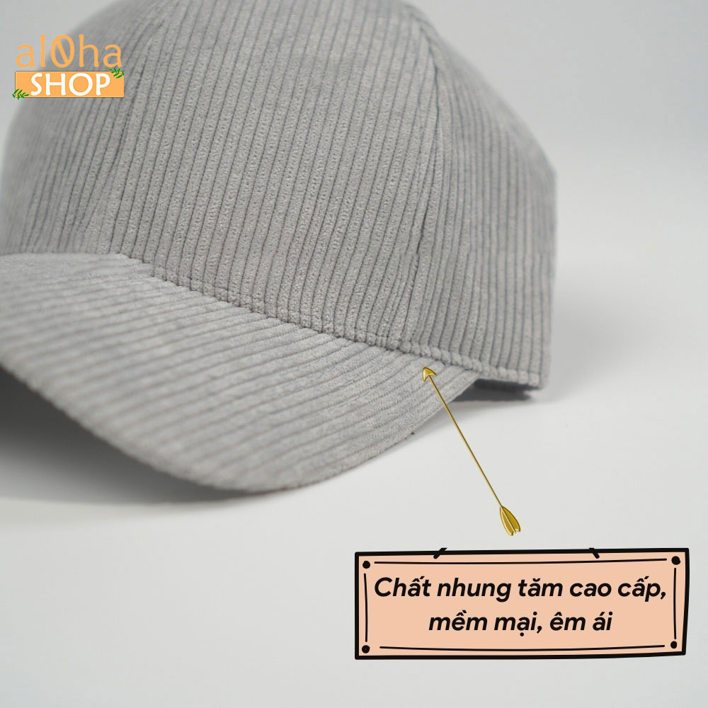 Mũ lưỡi trai vải nhung tăm trơn - nón Ulzzang unisex nam nữ chống nắng - al0ha Shop