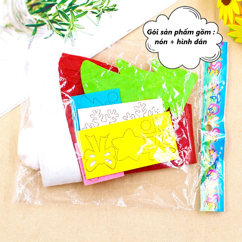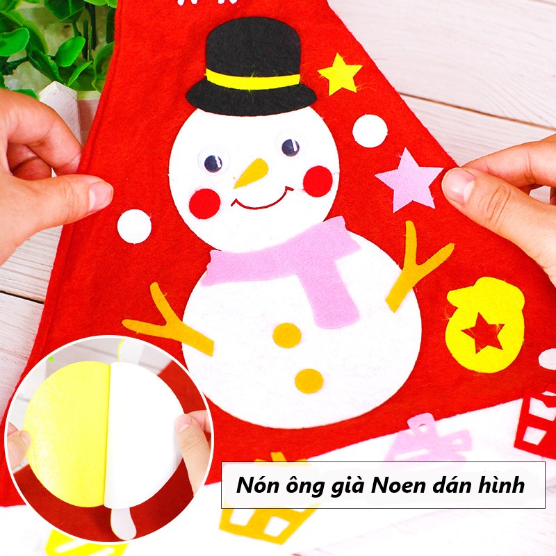 Mũ/ nón Noen giáng sinh dành cho bé tự trang trí, dán hình. Sản phẩm hoàn toàn mới 100% và màu sắc đẹp, đa dạng. Chất liệu bằng vải không dệt cao cấp.