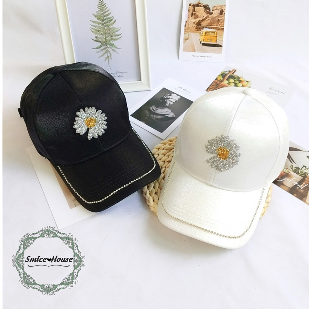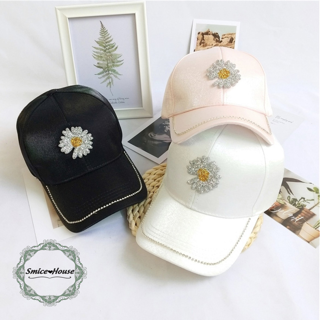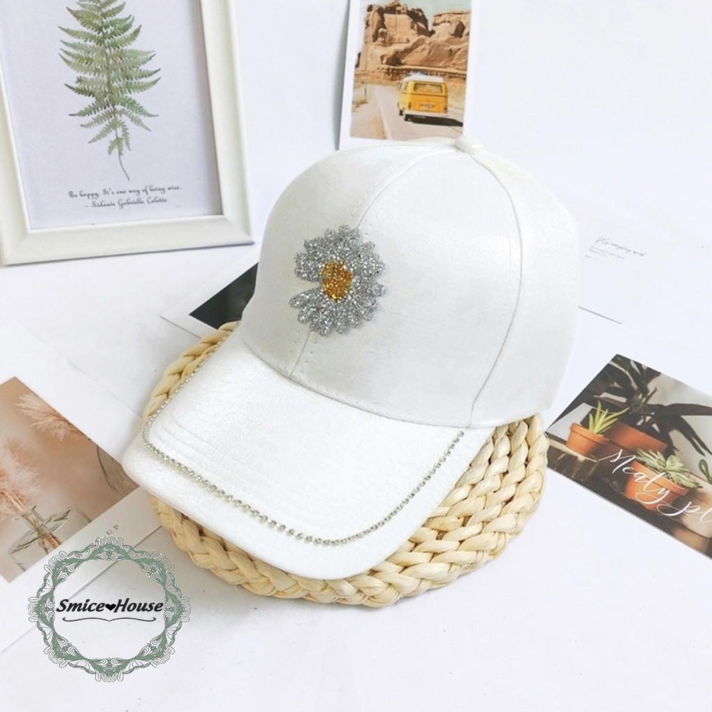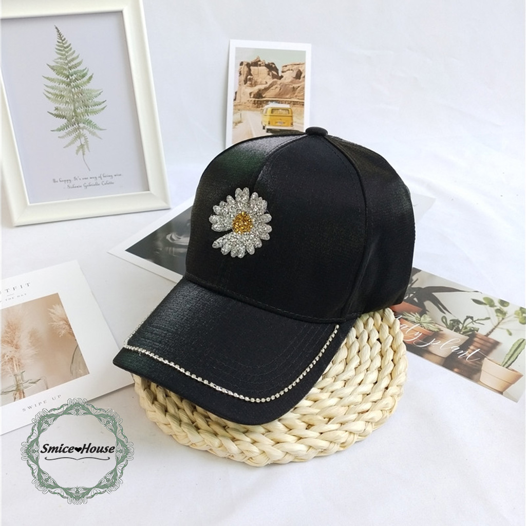 Mũ nữ thời trang phiên bản hàn quốc mũ lưỡi trai lưới màu đỏ hoa cúc nhỏ mùa xuân và mùa hè chống nắng/ nón nữ đính đá cao cấp freesize có thể điều chỉnh - Smice House