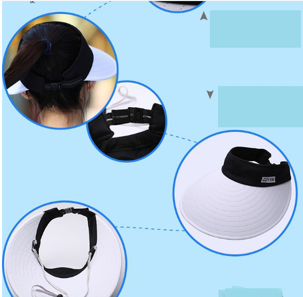 Mũ chống nắng có dây điều chỉnh kích cỡ vừa với đầu, có dây quai mũ, vì vậy bạn sẽ hoàn toàn yên tâm đội mũ mà không phải lo mũ không vừa đầu hay là lo mũ bị lật, bay,