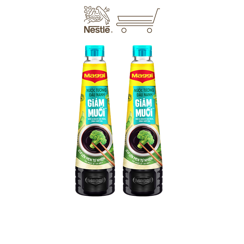 BỘ SẢN PHẨM BAO GỒM 02 chai Nước tương MAGGI Đậu Nành Giảm Muối (300x2) THÔNG TIN CHI TIẾT Nước tương MAGGI Giảm muối với chiết xuất đậu nành lên men tự nhiên từ những hạt đậu nành chọn lọc tối thiểu 100 ngày ở nhiệt độ khoảng 30 độ C, nhờ đó cho ra giọt nước tương sánh đậm thượng hạng, giữ trọn hương thơm đậu nành tự nhiên cùng vị đậm đà hài hòa. ĐẶC ĐIỂM NỔI BẬT - Từ thương hiệu số 1 thị phần nước tương Việt Nam - Nước tương Giảm muối, vẫn giữ vị ngon hài hòa sánh đậm đà nhờ từ chiết xuất đậu nành lên men tự nhiên 100 ngày ở ~ 30 độ C - Chấm, kho sánh đậm chọn ngay nước tương Maggi THÀNH PHẦN Nước, đường, muối i-ốt, chiết xuất đậu nành lên men tự nhiên 85 g** (có chứa đậu nành - soya và lúa mì - wheat), đường, chất điều vị (621, 631, 627), chất tạo màu tổng hợp 150c, chất điều chỉnh độ acid 260, chất bảo quản 202, chất ổn định 415, hương liệu giống tự nhiên và kali iodid. (***) Lượng trung bình tính trên 1 lít sản phẩm. LƯU Ý - Không sử dụng cho người dị ứng với các thành phần của sản phẩm HƯỚNG DẪN SỬ DỤNG Dùng trực tiếp, chay mặn đều dùng được. Đậy kín nắp sau khi sử dụng. CÁCH BẢO QUẢN - Bảo quản sản phẩm nơi khô ráo, tránh ẩm ướt Xuất xứ: Thụy Sỹ Nơi sản xuất: Việt Nam Ngày sản xuất: In trên bao bì sản phẩm Hạn sử dụng: 12 tháng kể từ ngày sản xuất THÔNG TIN THƯƠNG HIỆU Nestlé là tập đoàn thực phẩm, dinh dưỡng và thức uống lớn trên thế giới với bề dày lịch sử hơn 150 năm kinh nghiệm không ngừng cải tiến và phát triển. Với hơn 2000 nhãn hiệu khác nhau, từ các thương hiệu biểu tượng toàn cầu cho đến các thương hiệu địa phương được yêu thích, mục đích của Nestlé là nâng cao chất lượng cuộc sống và góp phần vào một tương lai khỏe mạnh hơn.Giá sản phẩm trên Tiki đã bao gồm thuế theo luật hiện hành. Bên cạnh đó, tuỳ vào loại sản phẩm, hình thức và địa chỉ giao hàng mà có thể phát sinh thêm chi phí khác như phí vận chuyển, phụ phí hàng cồng kềnh, thuế nhập khẩu (đối với đơn hàng giao từ nước ngoài có giá trị trên 1 triệu đồng).....
