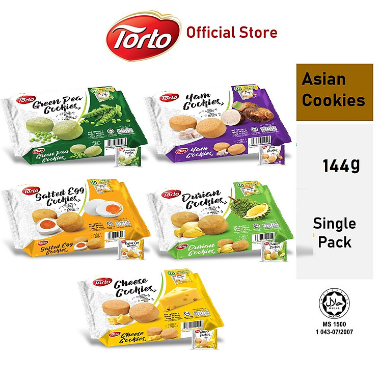 Bá́nh quy Đậu Xanh White castle nhập khẩu Malaysia 144g Torto Asian Cookies Green Pea Cookies