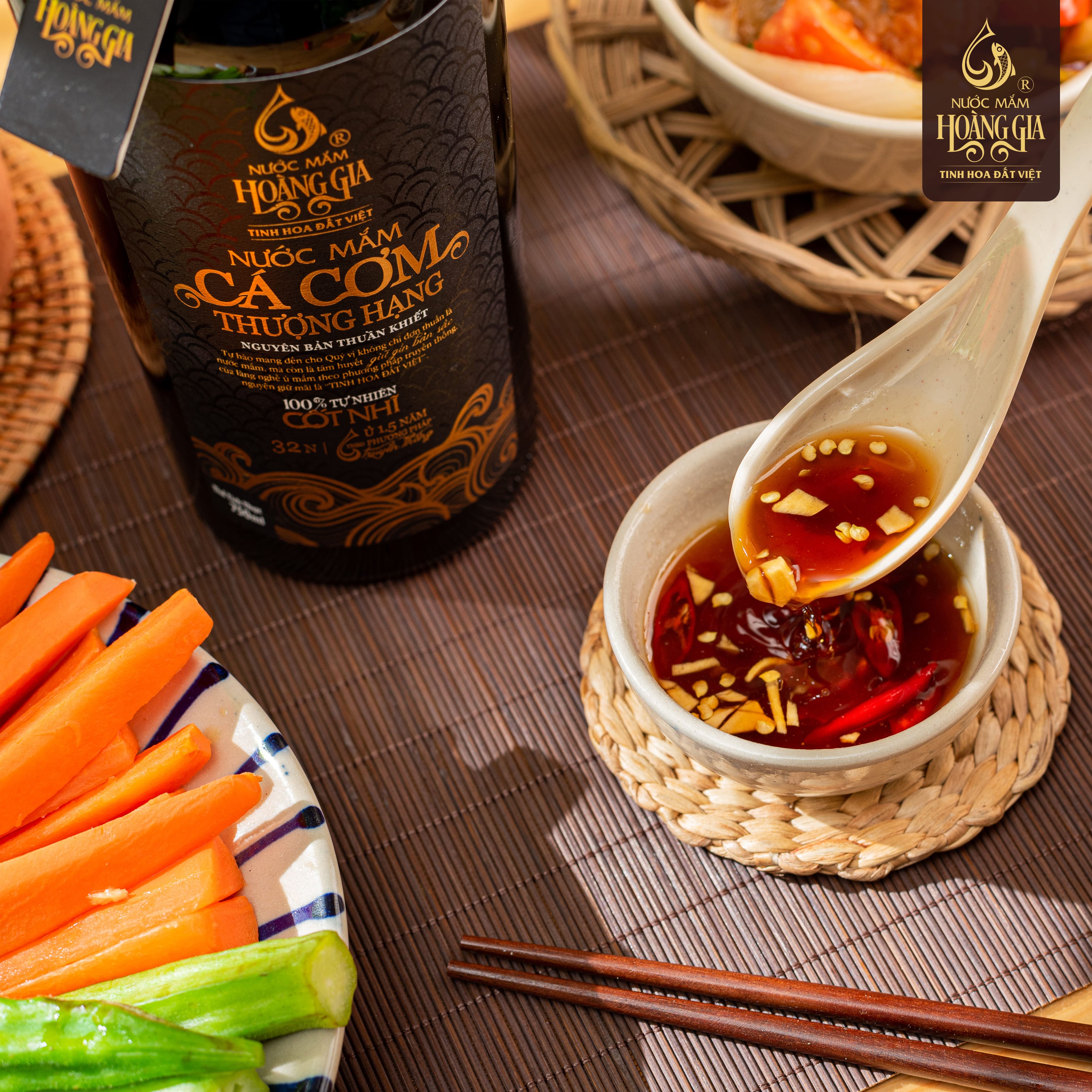 - Nước mắm Hoàng Gia - Nguyên bản thuần khiết - 100% Tự nhiên cốt nhĩ: Sự kết hợp giữa cá cơm thượng hạng và muối biển đặc trưng nổi tiếng của vùng đất Bình Thuận, được ủ theo phương pháp truyền thống trong thời gian 1.5 năm đã sản sinh ra những giọt Nước mắm Hoàng Gia là khác biệt, là duy nhất
