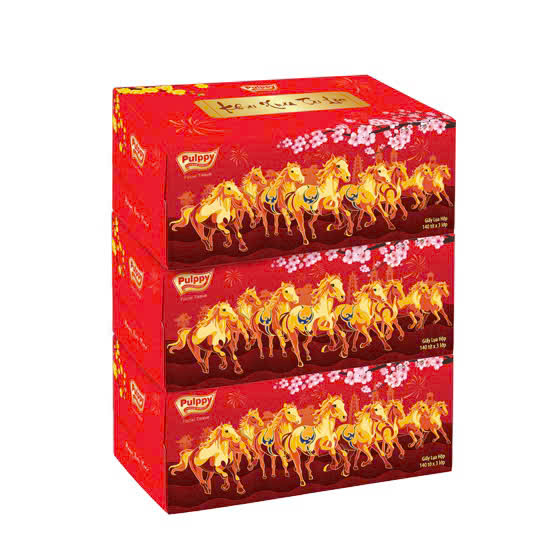 Mua 3 Tặng Quà - Hộp Khăn Giấy Tết Bính Ngọ 2026 Pulppy 3 Lớp Màu Đỏ May Mắn