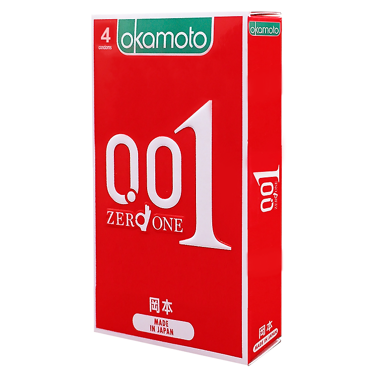 Bao Cao su Okamoto 0.01 PU Siêu mỏng Truyền Nhiệt Nhanh Hộp 4 Cái