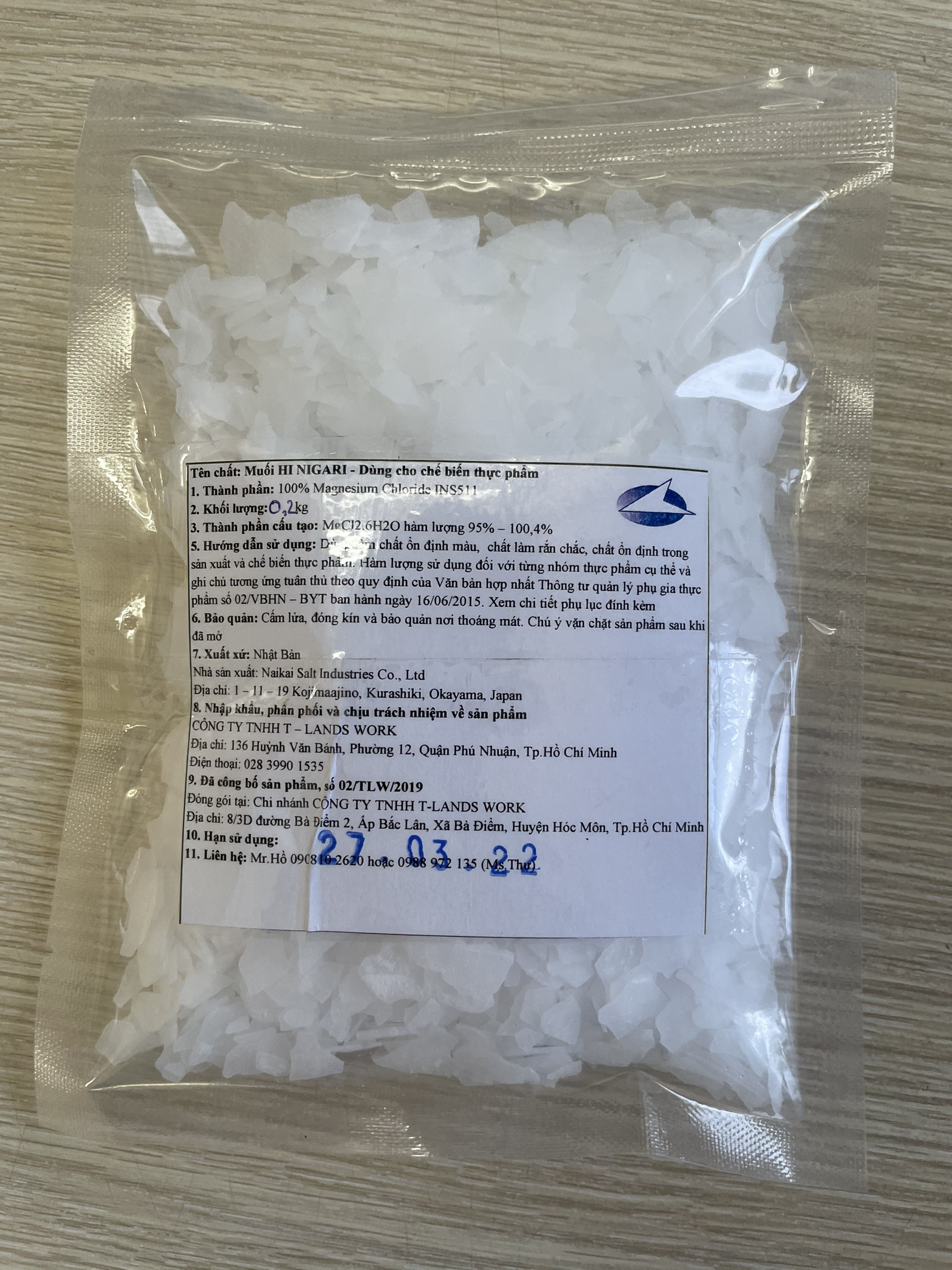 Muối Nigari Nhật Bản 200g làm đậu hũ đậu phụ siêu ngon béo Phụ gia đậu hũ Nigari (Magnesium Chloride INS511). MUỐI HI NIGARI còn có tên gọi khác: Nigari, phụ gia đậu hũ, phụ gia đậu hũ non, đậu hũ nước đường, chất đông tụ đậu hũ