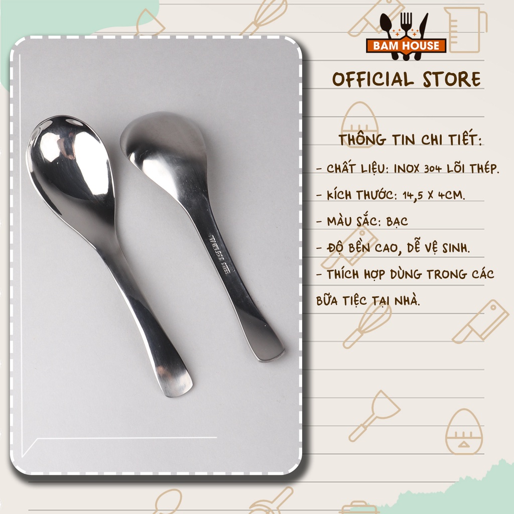 Giới thiệu Muỗng canh bầu tròn inox Bam House cán cong loại dày cao cấp MCC01 - Gia dụng bếp