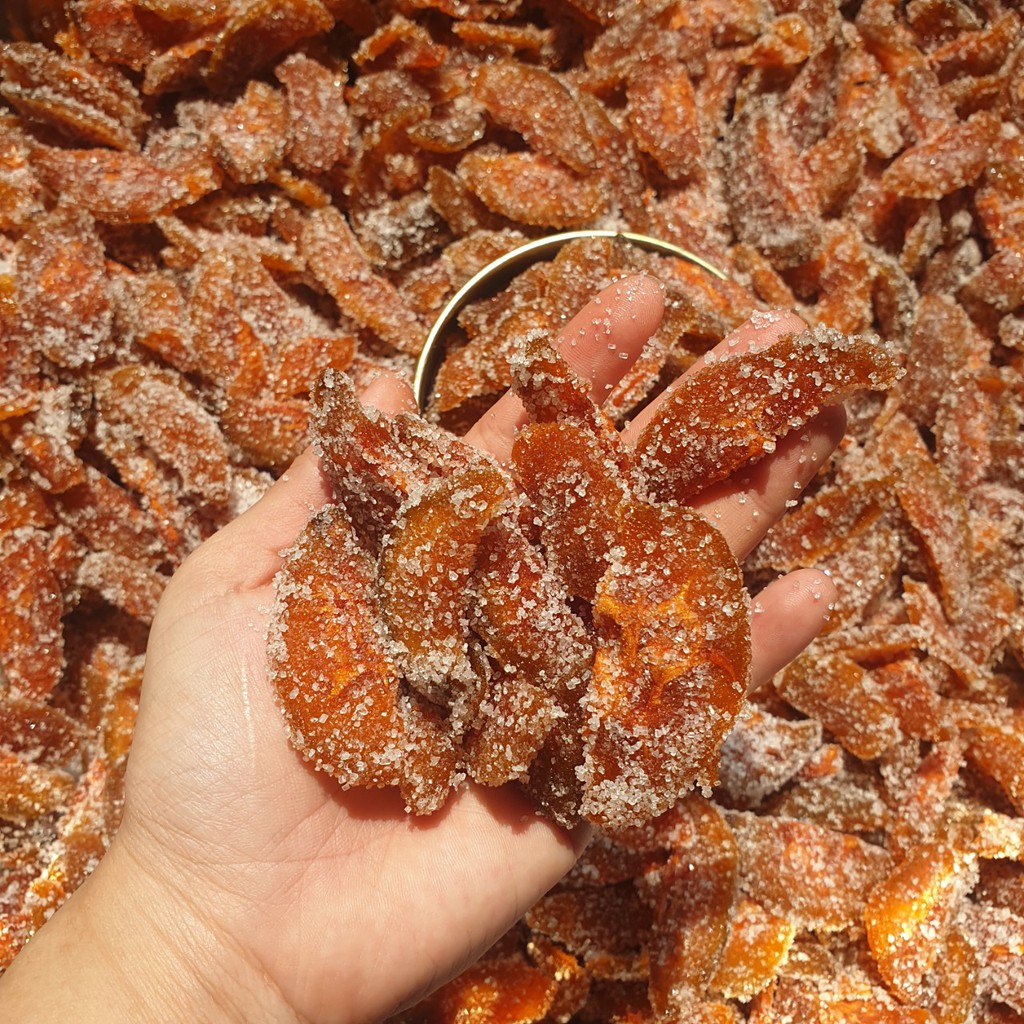 Thực phẩm và đồ uống > Đồ ăn vặt > Thức ăn khô > Hoa quả sấy khô || Mứt Cóc Cay Chẻ Lát Lon 500gr