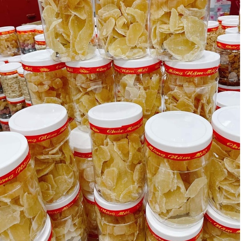 MỨT GỪNG THANH ĐIỆP ⛔ Mứt gừng Huế vốn thơm, cay hơn mứt các vùng vì được chế biến từ củ gừng Tuần, vùng đất đồi pha sỏi phía tây bắc thành phố Huế. Củ gừng Tuần tuy nhỏ nhưng dậy hương thơm và vị đậm đà. Gừng vừa độ, không quá non và quá già. Mứt gừng huế lát không to, vừa đường, làm trắng bằng chanh và quất, không màu, không phẩm. Để được 5,6 tháng không bị chảy nước. -------------------------- Tác dụng của mứt gừng: ✔️ Tác d.ụ.ng gi..ả.i đ.ộ.c, ch.ố.ng n.ô.n m.ử.a ✔️ Tr.ị đ.a.u b.ụ.ng h.o.ặ.c b.ụ.ng đ.ầ.y tr.ư.ớ.ng do ă.n u.ống không điều độ ✔️ Dùng ph.ò.ng v.i.ê.m đ.ư.ờ.ng h.ô h.ấ.p như v.i.ê.m h.ọ.ng, h.o m.ất t.i.ế.ng ✔️ Và một số công dụng khác -------------------------- Cam Kết: ❌ Không hóa chất tẩy trắng ❌ Không hóa chất bảo quản ❌ Không sử dụng gừng Trung Quốc #mutgung #gừng #mứt #muttet #2022 #banhkeotet #doantet #tết #mứt #doan #giadungsi #banchay #sidoan #hoaquasay #shopyeuthich