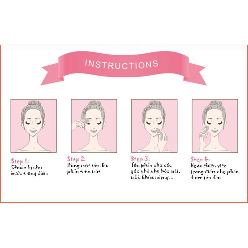 - Đổ 1 lượng nhỏ kem lên tay hoặc vùng cần che khuyết điểm, dùng bông mút tán đều để tạo lớp nền hoàn hảo. - Sau khi đánh kem lót và kem nền sử dụng bông chấm phấn phủ lên toàn khuôn mặt để cố định lớp nền khô thoáng và bám chắc hơn.