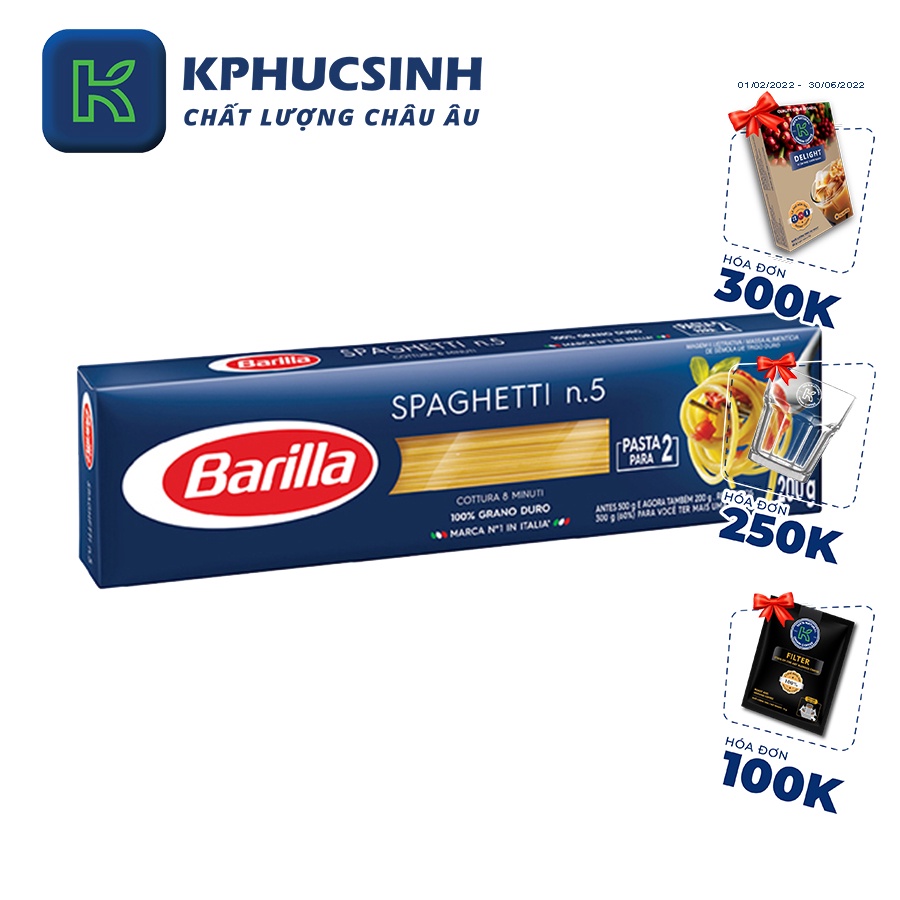 Giới thiệu Mỳ barilla sợi hình ống các cỡ Spaghetti 200g KPHUCSINH - Hàng Chính Hãng