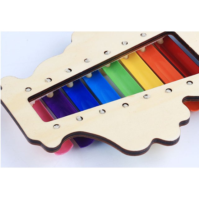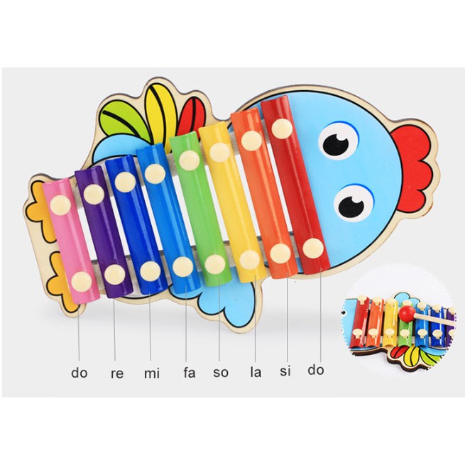 * MÔ TẢ SẢN PHẨM: Đồ chơi đàn gỗ Xylophone 8 nốt nhạc - Đồ chơi âm nhạc 8 sắc màu nhiều hình con vật đáng yêu cho Bé Kagonk - Chất liệu: gỗ sồi và khung thép - Kích thước sản phẩm: 23,5x15 cm - Khối lượng: 300g - Xuất xứ: Việt Nam - Đàn thiết kế 8 sắc màu tương ứng 8 nốt nhạc thật sinh động, bắt mắt với hình các con vật đáng yêu như hình chú chim, hình heo, hình cá, hình cún con... - Shop giao ngẫu nhiên hình đàn nha khách. - Mỗi phím đàn có một chức năng và âm thanh khác nhau. - Chất liệu khung gỗ, kết hợp phím đàn kim loại chắc chắn an toàn tuyệt đối cho bé - Đàn kích thích các giác quan cho trẻ và khả năng tương tác , nhịp điệu, giai điệu * CAM KẾT - Shop cam kết hàng hóa có nguồn gốc rõ ràng - Mang đến cho quý khách hàng những sản phẩm chính hãng theo đúng tiêu chuẩn của nhà sản xuất - Chữ tín luôn được đặt lên hàng đầu Tất cả sản phẩm của Kagonk đều được bảo hành . Quý khách hàng không hài lòng về sản phẩm đừng ngại liên hệ ngay với shop . Shop luôn lắng nghe và phục vụ quý khách hàng mọi điều tốt nhất #kagonk #dochoitreem #dochoikagonk #dangochobe #dochoigo #dochoichobetrai #dochoichobegai
