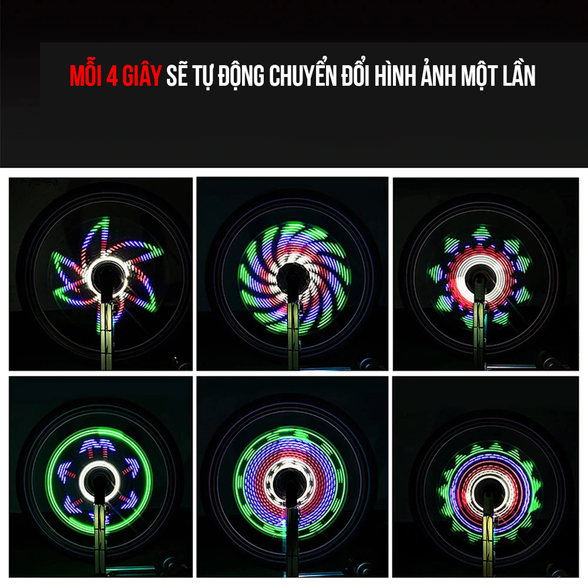 Giới thiệu Bộ Đèn Trang Trí Bánh Xe 64 Led 30 Hình Gắn Trục Chuyển Đổi Tự Động Nổi Bật Ban Đêm Có Sạc Điện USB 400mAh Thuận Tiện