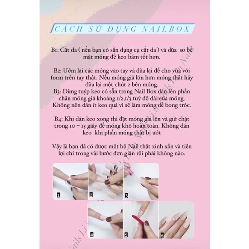❌LƯU❌Tất cả các sản phẩm nailbox bên shop đều là sơn GEL✅ TRUY CẬP TRANG SHOP ĐỂ ĐƯỢC THAM KHẢO THÊM NHIỀU MẪU XINH BẠN NHÉ💖 ❤️Hướng dẫn sử dụng - [ ] B1: chà sát đều bề mặt móng tay bằng dũa - [ ] B2: lấy một lượng keo vừa đủ dán lên chân móng giả - [ ] B3: nhấn và giữ móng giả từ chân đến đầu móng vào form móng thật, ấn giữ thật chặt 10s đợi keo khô là ✅