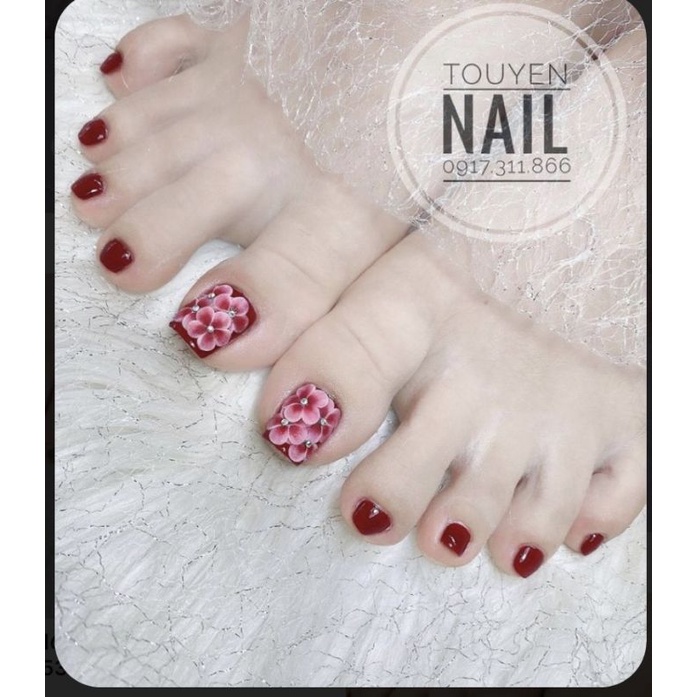 Nailbox/ Bộ 24 móng úp chân sẵn/ Móng chân giả màu đỏ phối hoa giá rẻ Giá BLOCK