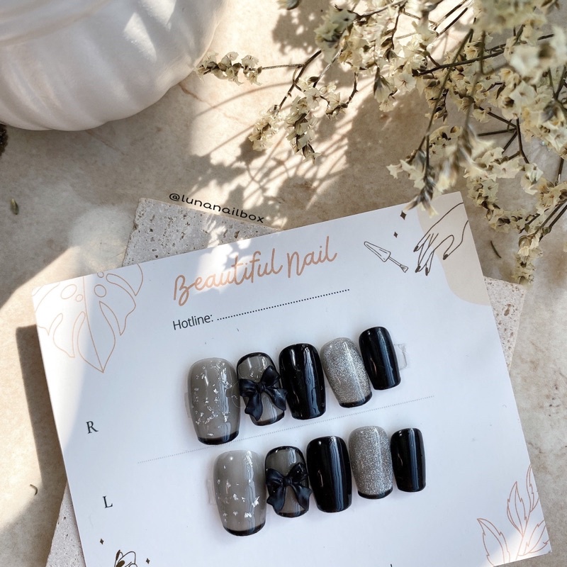 Sắc Đẹp > Chăm sóc tay, chân & móng > Chăm sóc móng > Móng giả || Nailbox nơ đen mắt mèo xinh xắn