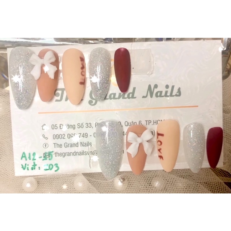 Nailbox Nuna móng úp móng tay giả đính nơ đơn giản viết chữ theo yêu cầu