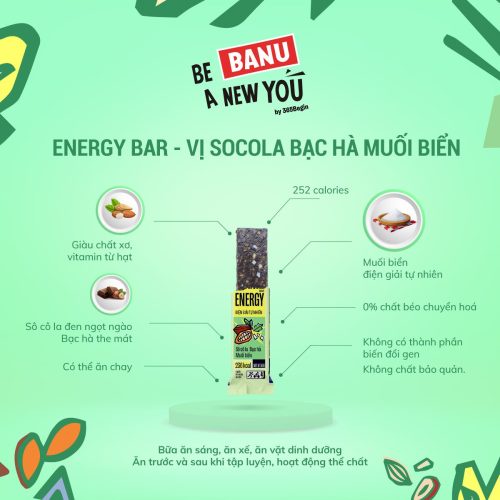 Thanh năng lượng protein Banu vị socola bạc hà muối biển ăn kiêng giảm cân