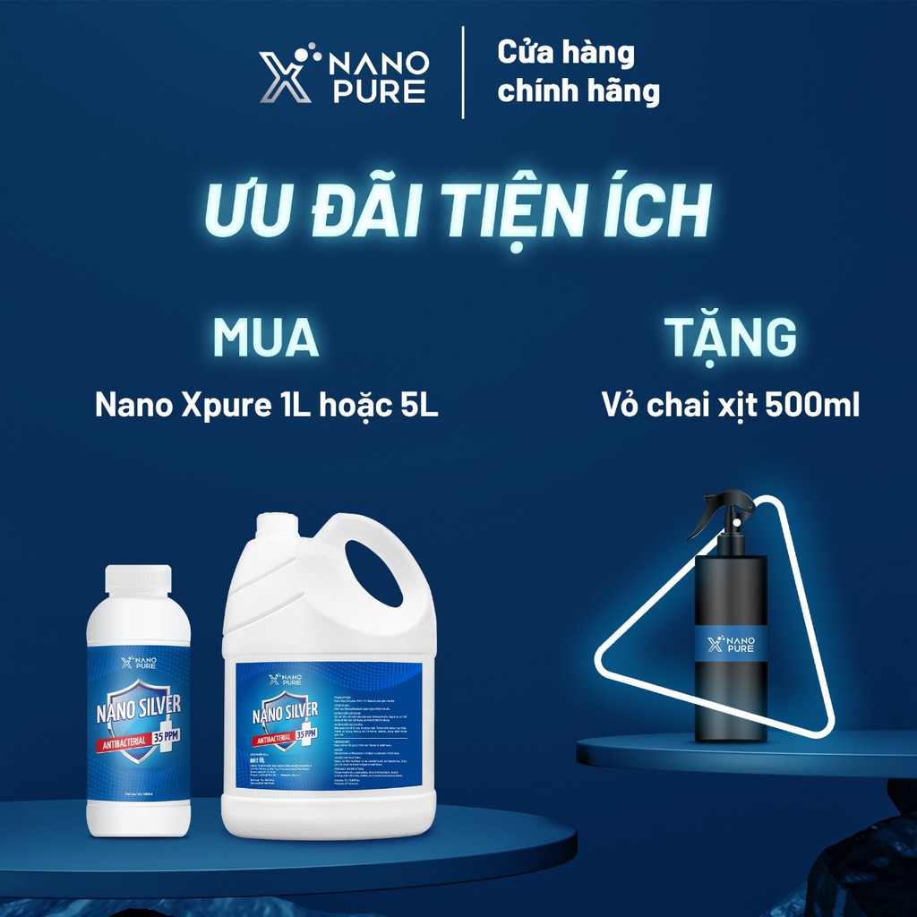 Nano Bạc Diệt Khuẩn (Silver) DUNG DỊCH PHUN SƯƠNG VỚI MÁY-Nano Xpure Antibacterial 35ppm 4L&1L–Nano Bạc AHT Corp (AHTC). [COMBO TIỆN ÍCH TẶNG FREE]Dung Dịch Nano Xpure Nano Bạc 35 ppm Dung tích 4L VÀ 1L - Nano Bạc AHT Corp - Khử mùi, kháng khuẩn. - XP00005_35ppm. Dung Dịch Nano Xpure Nano Bạc 35 ppm - Nhiều dung tích tiện lợi AHT Corp - Khử mùi, kháng khuẩn. - XP00001 Công nghệ nano hiện nay là công nghệ có tính ứng dụng cao và an toàn với người sử dụng, thân thiện với môi trường. Là công nghệ triển vọng của hiện tại và tương lai, công nghệ nano ứng dụng trong nhiều lĩnh vực: xử lý môi trường, trong nông nghiệp, thủy sản, ứng dụng trong hóa mỹ phẩm.... Ứng dụng Nano bạc trong hàng tiêu dùng, chăm sóc nhà cửa. Ứng dụng Nano bạc trong hàng mỹ phẩm, chăm sóc sức khỏe. Ứng dụng Nano Bạc trong việc sát khuẩn dụng cụ y tế.