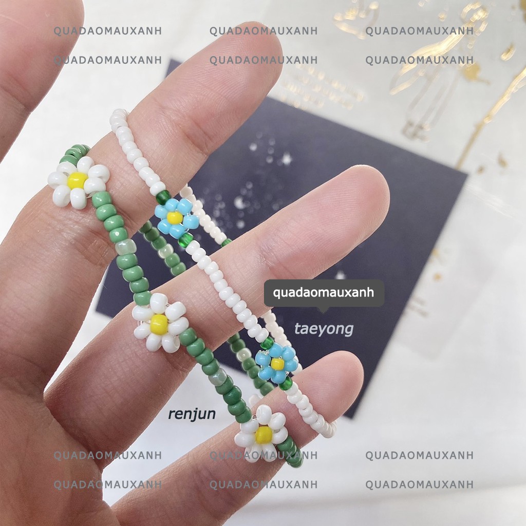 Giới thiệu NCT Taeyong, vòng tay handmade hạt cườm trắng hoa cúc xanh #K-pop idol cheap moment #Quadaomauxanh