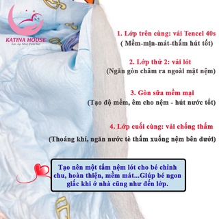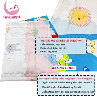 Nệm cho trẻ sơ sinh Katina House , có lót chống thấm, vải tencel mềm mát mịn, thoáng khí thấm hút tốt