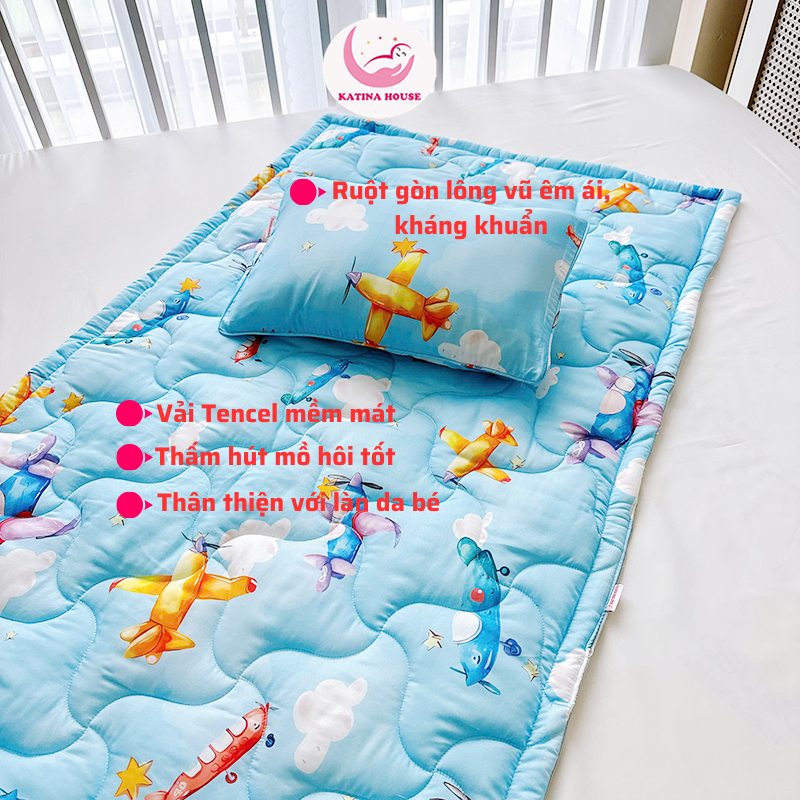 - Lớp bề mặt là dòng vải Tencel siêu mềm, siêu mát, rất thoáng khí; các bé nào hay ra mồ hôi trộm rất thích hợp để sử dụng.