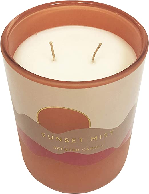 Sunset mist với hương thơm ngọt ngào với thiết kế hũ thủy tinh được sơn với thiết kế màu hồng cam lấy cảm hứng từ hoàng hôn và nắp gỗ từ nguyên liệu sáp đậu nành thân thiện và cực kỳ an toàn cho sức khỏe cùng thiết kế hai bấc tạo nên ánh sáng ấm áp và rực rỡ,
