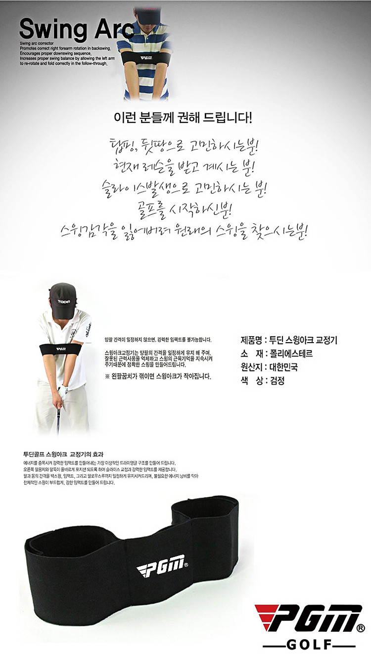 - Các nẹp vòng cung xoay giữ cho khoảng cách của cả hai cánh tay không đổi, ngăn chặn việc sử dụng sức mạnh cơ bắp không chính xác và duy trì bộ nhớ cơ bắp của Swing, dẫn đến một cú Swing chính xác. Nếu khuỷu tay trái bị uốn cong, vòng cung xoay sẽ nhỏ hơn.