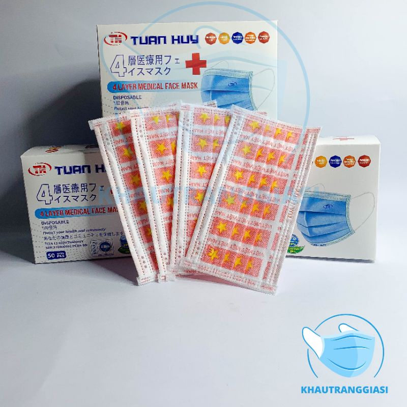 Khẩu trang y tế kháng khuẩn 4 lớp hàng Tuấn Huy có dập logo Tôi YÊU VIỆT NAM. Sản phẩm đã được tiệt trùng cấu tạo bởi 4 nếp gấp song song và 4 lớp, có tác dụng ngăn khói bụi, khí độc, vi khuẩn xâm nhập, phòng chống dịch bệnh nguy hiểm lây qua đường hô hấp.
