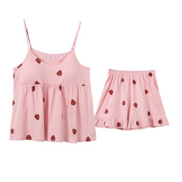 Bộ ngủ hình quả dâu túi zip cam kết y hình có ảnh thật hình bên, khách tham khảo - hàng quảng châu -dây vai có thể điều chỉnh ngắn dài - có kèm đệm mặc thoải mái k cần mặc thêm áo ngực - quần chun co dãn thoải mái - chất vải mềm mại co dãn thoải mái - có size m, l, xl cho mọi người lựa chọn