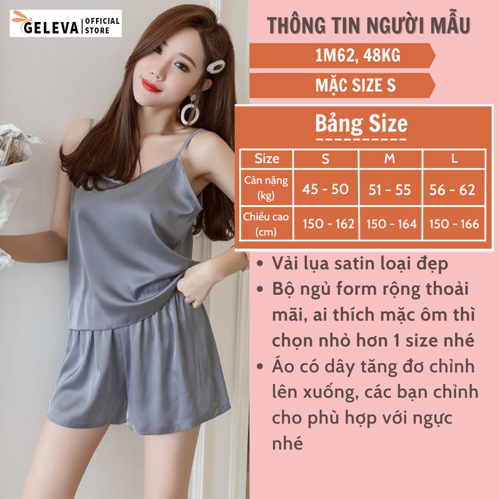 Giới thiệu Bộ ngủ 2 dây lụa mịn cao cấp, Đồ ngủ nữ 2 dây mặc nhà pijama áo hai dây quần đùi nhẹ nhàng thoải mãi Geleva G226