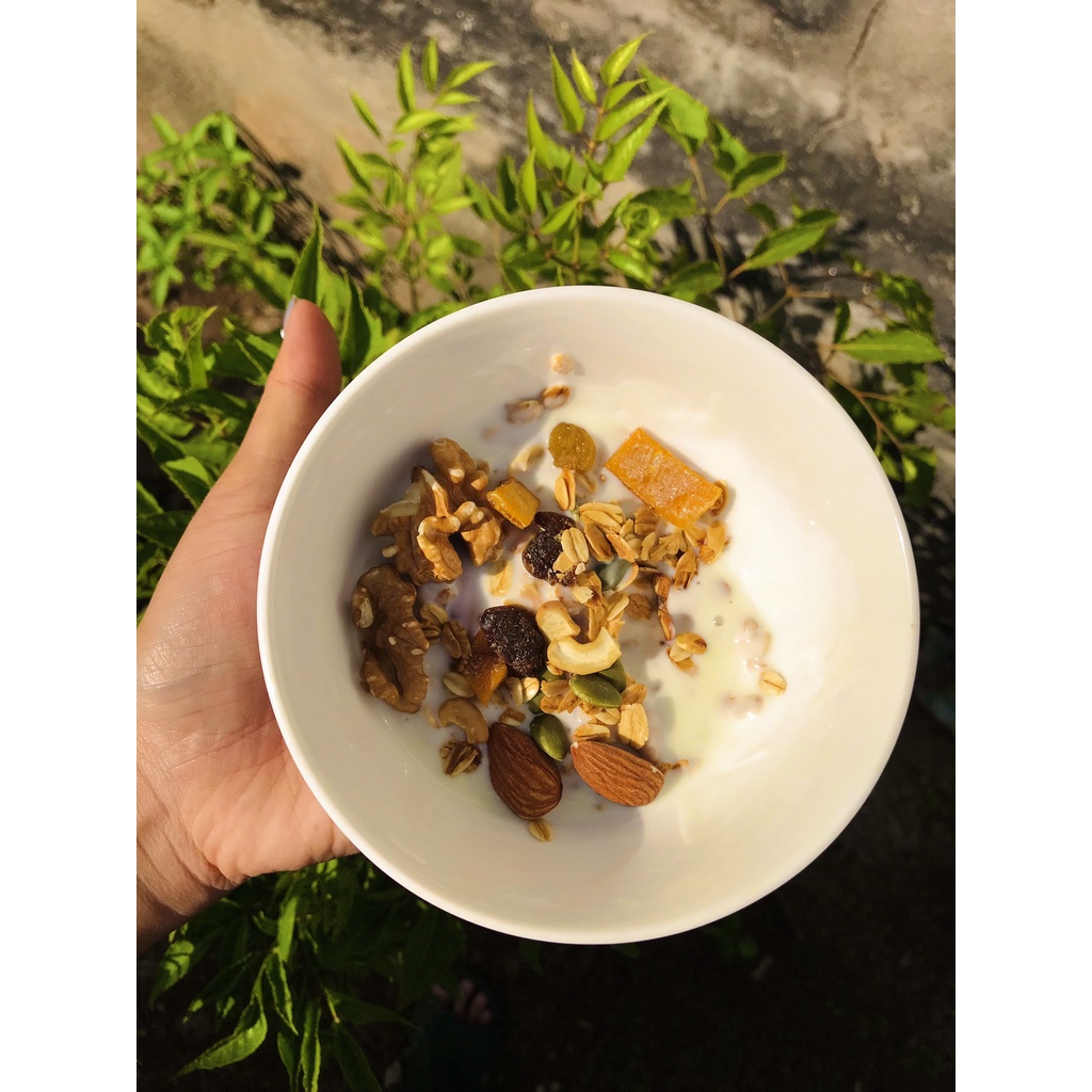 Hạn sử dụng: 6 Tháng kể từ ngày sản xuất, không sử dụng chất bảo quản. --------------------- THÔNG TIN SẢN PHẨM GRANOLA - Hương vị thơm, ngon, giòn và bổ dưỡng từ công thức đặc biệt của nhiều năm nghiên cứu phát triển. - Thành phần : Yến mạch Úc, óc chó vàng, Hạnh nhân, Hạt bí xanh, Hạt điều, nho vàng , nho đen, xoài sấy dẻo. - Granola - Ngũ cốc dinh dưỡng cho mọi lứa tuổi. ----------------- TẠI SAO NÊN SỬ DỤNG GRANOLA? 1. Giữ vóc dáng và giảm cân hiệu quả khoa học. 2. Cung cấp chất béo có lợi cho cơ thể. 3. Cung cấp 1 lượng lớn vitamin tổng hợp. 4. Một nguồn khoáng sản tốt cần thiết cho các cơ quan quan trọng. 5. Giảm mức cholesterol giảm nguy cơ gây bệnh tim mạch. 6. Giảm lượng đường trong máu. 7. Cải thiện sức khoẻ đường ruột (hệ tiêu hoá tốt) 8. Cung cấp nhiều chất chống oxy hoá cho cơ thể trẻ hoá. 9. Là lựa chọn thông thái cho chế độ ăn chay, ăn kiêng không thiếu chất và mệt mỏi. Những đối tượng nên sử dụng Granola ngay từ bây giờ: Người bệnh tim, người bị tiểu đường, người có nhu cầu giảm cân, người tập gym. ----------------- - Bảo quản nhiệt độ phòng, nơi khô ráo thoáng mát. - Nên bảo quản sản phẩm trong tủ lạnh để có chất lượng tốt nhất - Hạn sử dụng: 30 ngày kể từ khi mở túi - Không sử dụng sản phẩm quá hạn hoặc mở túi quá lâu #mfood #hatdinhduong #ngucoc #granola #granolagiamcan